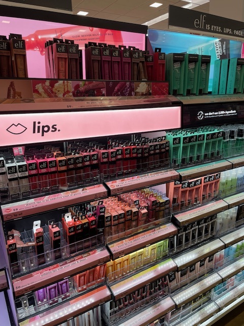Na półkach widać to od razu: estetyczne ekspozytory „Eyes · Lips · Face”, modularne, nowoczesne, z mocną identyfikacją wizualną. To marka, która od razu wygląda „inaczej” – minimalistycznie, czysto, zachęcająco. e.l.f. rozumie, że dziś w drogerii wygrywa się pierwszym spojrzeniem, zanim jeszcze klientka dotknie produktu.