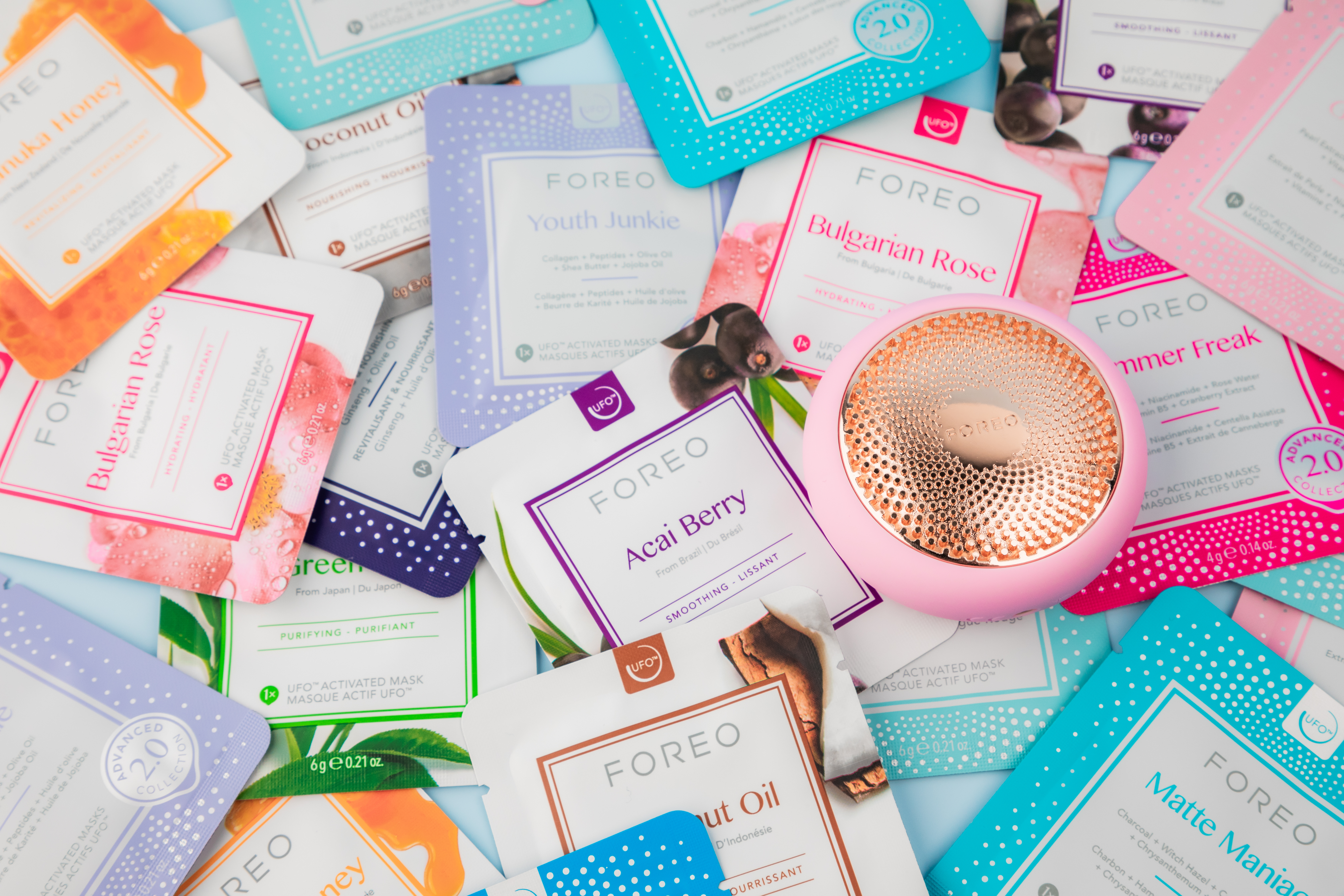 Kolekcja maseczek do urządzenia UFO™, stosowanych razem z urządzeniem UFO™ 3 LED, oferuje pełne spektrum pielęgnacji – od intensywnego nawilżenia po efekt liftingu, rozświetlenia i detoksu.