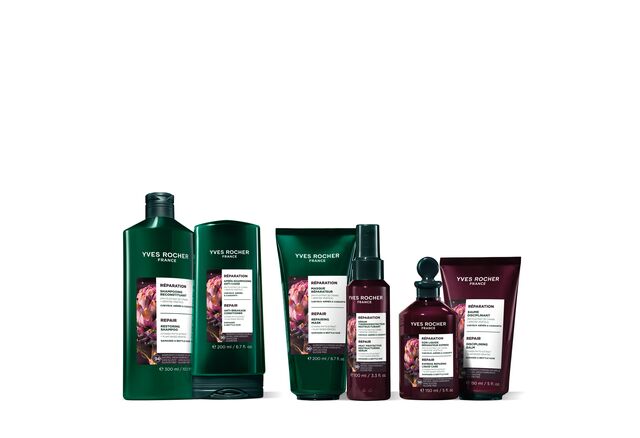 Aby osiągnąć trwałą naprawę, ważne jest, aby zacząć od ochrony włókna włosowego. W tym celu Yves Rocher wybrało fito ekstrakt z karczocha; aktywny składnik roślinny znany ze swojej zdolności do ochrony błonnika i zachowania kapitału keratynowego.
